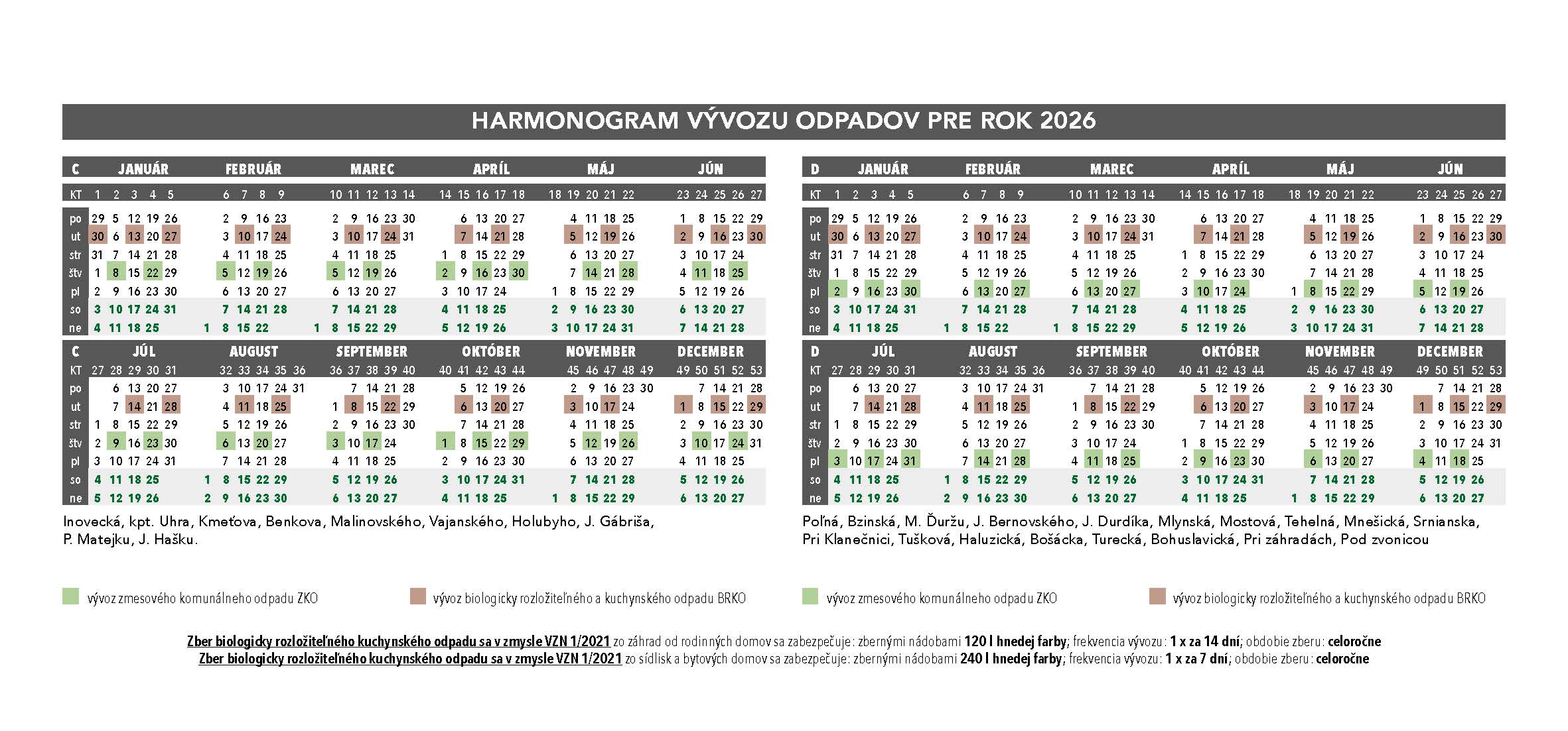 HARMONOGRAM vývozu zmesového komunálneho odpadu pre rok 2026